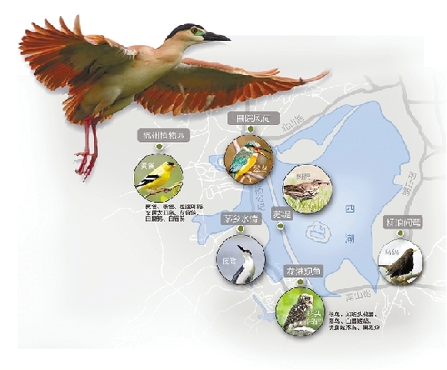 日日与鸟儿相伴的祝辰洲,为大家推荐了西湖边鸟类的最佳观赏点,大家可以带着这张“春季西湖观鸟图”,去探寻它们的踪迹。