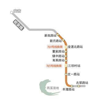 在三坝村站和金渡北路站换乘