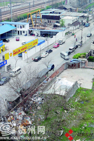 虽然有铁门加锁,还有砖墙围着,但与小区一街之隔的七八家废品回收站还是瞧上了这块免费资源。