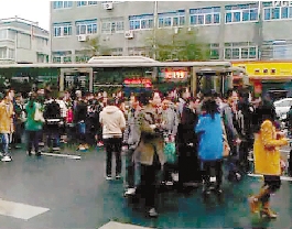 如此庞大的候车人群,小小的公交站台显然已经无法容纳,人挤人挤到了机动车道上,前后绵延五六十米,最夸张的时候,占据了三个机动车道中的两个。