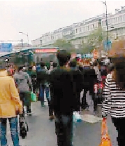 一辆179路公交缓缓驶来,人群开始骚动,公交车一停,人们纷纷挤向车门。待车子关门重新启动后,还有不少败下阵来的人们一路追赶。