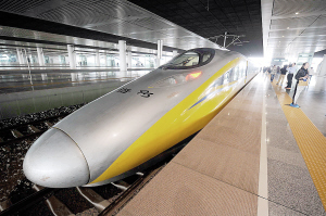 记者咨询了相关负责人,原来,黄色的检测列车还被称为“黄医生”,借鉴自日本。在日本的新干线上,在每天非营运时段,都会有这样的黄色监测列车对线路上各系统进行检测和调试,以保障正常运营的安全和稳定。这位负责人还透露,正式通车后,列车会有多个车型,但是车身颜色均为白色。