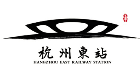 东站枢纽外观方案因为直接由枢纽建筑外观幻化而来,简洁、沉稳,富有国际化,被很多市民所喜爱。标志整体形似莲蓬,寓意代表杭州气质的江南意蕴,建筑下方的地平线采用书法枯笔,虚实结合,更具动感,寓意列车飞驰而过。右上以“东”字起首章为点缀,画龙点睛,整个LOGO造型大气精致,和雅庄重。