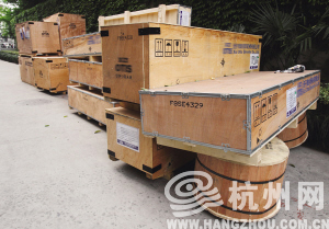 昨天下午一点多,再次来到泰和苑6幢,门前堆了好几个西子奥的斯的大木箱子,这些是电梯配件。