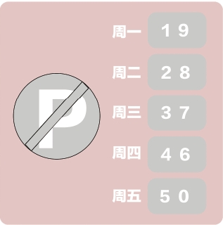仿照现在杭州市的限号政策,D区也有自己的限号。将001-140的号子发给车主,周一限编号中后二位含1和9(1、9、10、11、12……19;21、29、31、39……81、89;90、91、92……99;101、109、110、111、112……119;121、129、131、139)的车辆,不得停进小区,周二限制后两位含2、8,以此类推,周末原则上不限。这样每天差不多能限制40辆车进入小区。