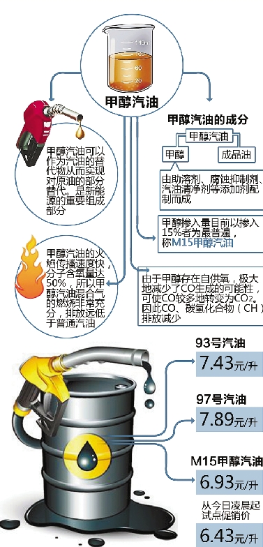 比如M15就是15%的甲醇、85%的汽油,外加特制的添加剂;而M85就是85%的甲醇,15%的汽油,外加特制添加剂。因为甲醇的价格比汽油便宜很多,所以M85的价格也相对便宜不少。