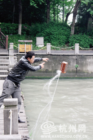 “你不要拍我啊,要是把我拍进去,你信不信我把相机砸碎了扔河里喂鱼啊!”运河施家桥畔,撒网捕鱼的眼镜男警惕地盯着记者手中的相机,大声恐吓道。