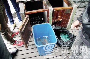 捕到的鱼被藏在垃圾桶里,上面还盖着黑色垃圾袋,放在垃圾桶里,实在太隐蔽了,如果不是小胡自己拿出来,外人根本想不到。