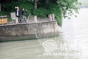 对于施家桥捕鱼的事情,读者胡舸很有意见,他来电反映:作为杭州市民不应该对此熟视无睹。我打电话给城管热线,回复是没有针对此类事件的管辖权,让我联系运河管理处,运河管理处回复只有环境治理监督权。无权受理!