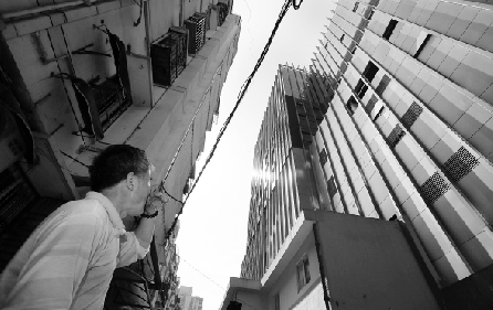 陈师傅,家住杭州南班巷小区21幢1单元7楼,从去年开始,他家次卧的窗帘就一直拉着,终日不见阳光。他说,这都怨只有6米之隔的天工艺苑。