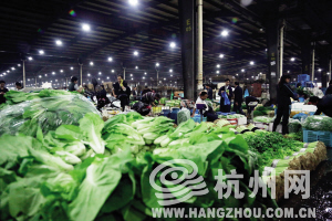 凌晨两三点,位于勾庄的杭州农副产品物流中心已是人声鼎沸。从2009年开始,进入物流中心的所有批次蔬菜都要进行抽样检测,这在国内尚属首例。记者 廖旭钢 摄