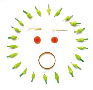 我用蒜苗当火苗,菠菜当眉毛,胡萝卜当眼睛,橡皮筋当嘴巴,拼了个太阳,这两天它实在太猛了。快拍小友 dahuzi88 摄