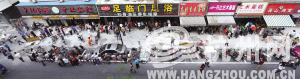 烤禽店地处闹市,离西湖又近,行人游客如织,过路人一般都会被眼前长长的队伍惊住,有的赶紧掏手机拍照,有的犹豫要不要排队去买,一个留小贝式莫西干头的瘦削小伙一边拍照一边自言自语:“奇葩啊……”