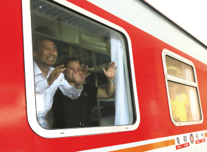 火车快要开动,陈老爷子颤颤巍巍扑到窗边,半张嘴,眼含泪,朝站台上几个年轻人不停作揖拱手,深深地鞠了好几个躬。