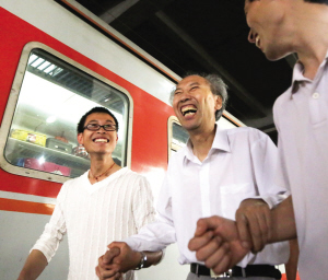 昨天中午,叶团长和葛杰一左一右,搀着陈老先生去赶火车,走上站台了,老少三人还说说笑笑。