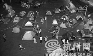 有一个家庭动作迅速,不到三分钟就搭好了帐篷。爸爸说,帐篷买回来后,特地和孩子一起在家练了两次,已经找到诀窍了。妈妈还带了垫被,她说,垫子太薄,怕孩子睡着不舒服。