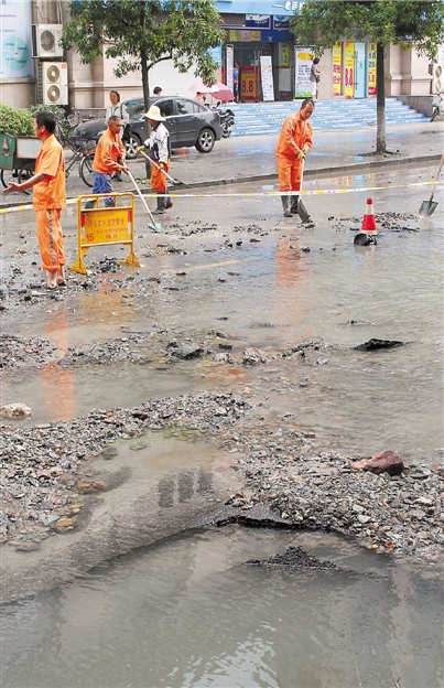水管发生爆裂,水管老化是一方面原因,路面交通压力大,车流量较大,长期碾压,路面出现沉降不均匀的现象,也是导致其“折寿”的重要因素。