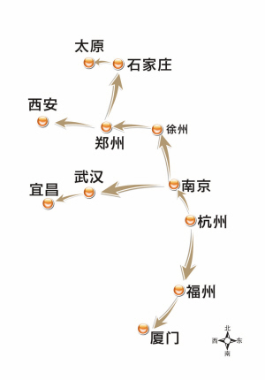 到石家庄后再转车(或直接在郑州转车),经石太客运专线花1小时到太原。杭州至太原所需时间,缩减至10小时。