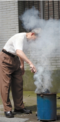 老皇城馒头山社区,78岁的王大伯要炖老鸭煲,一早烧起了煤炉。
