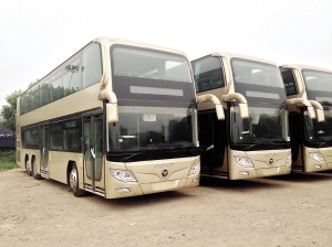 备受瞩目的新型双层巴士车辆终于到达了杭州。前天和昨天晚上,杭州本地巴士迷论坛《巴士之家》网友爆料称,在石桥停车场看到“双巴”的身影。昨天下午,记者来到公交石桥停车场,果然看到10辆身量巨大的双层巴士,肩挨着肩整齐地停在场地西南角。