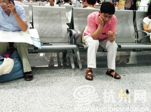 不过,也有不少乘客在候车大厅的“赵红卫问讯处”蹭充电,记者仔细观察了下发现,原来是地面插座的数量不够多。从候车大厅的安检处进入后,在10排等候座椅间,才只有3个地面插座,还有一个插座是在人来人往的过道中间,根本没办法使用。