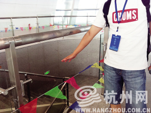 新东站很多地方都使用钢化玻璃作为护栏,但是记者发现,有不少应该有安全护栏的地方,玻璃却缺失了。施工方虽然在这些地方用绳子扎了彩旗作为警示,但还是有不少家长表示,这样还是挺危险的,孩子在追逐打闹的时候,万一不小心,容易发生坠落等意外情况。