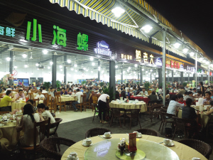 盛夏的夜晚,最惬意的事莫过于坐在露天一边喝冰啤一边吃海鲜。近日,随着黄龙海鲜大排档复出江湖,消夜爱好者又多了一个品尝美食的好去处。