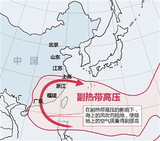说起原因来,我们还是得感谢副热带高压,虽然同样也是因为它,造成了最近的持续高温天。@中国气象爱好者说,这两天,副热带高压大幅西伸,深厚的清洁空气从太平洋出发,经华南向华东,污浊空气一扫而光,吹东南风的广东、福建空气质量几乎全部是优,空气透明度极佳。