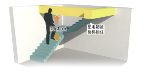 除了横梁外,楼梯拐角的墙面上,还装有一个配电箱。如果要安装楼梯,势必会遮挡住配电箱。“也就是说,如果我们家以后线路出问题,我得先拆了楼梯,才能在配电箱内检修。”潘先生觉得,这属于房屋空间布局设计不合理,是开发商的问题。