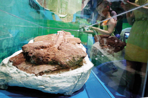 昨天,浙江省发现恐龙头骨和甲龙尾锤化石新闻发布会在浙江省自然博物馆举行。