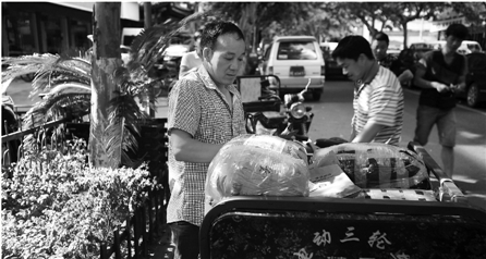金师傅说,以前快递公司在边上有一个收发点的,但是现在因为各种原因就搬出来了,只能在路边摆点。“希望以后能有个固定的收发点吧,这样夏天也不用晒太阳了。”