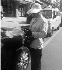 拱墅区夹城巷,是停车收费员牛大姐的工作场所,左右两侧24个停车位,70来米的路段是她的管辖区域。烈日当空,每当她跑去收一笔停车费返回时,汗珠马上就挂在她的脸上了。她的习惯性动作是,大大地喝一口水,然后用毛巾狠狠地抹把脸。