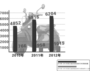 2010-2012年浙江省电动车交通事故数量与死亡人数