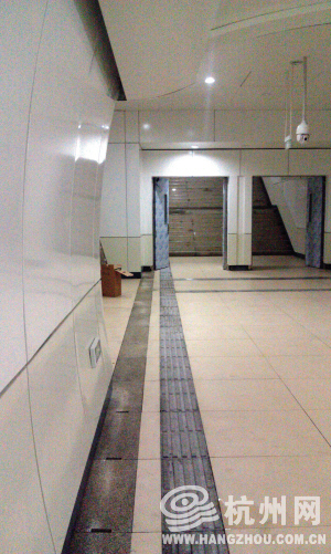 记者发现,在电梯底部通道口设有排水沟,4个主通道的两侧均由带孔的板砖铺成。这样的设计,在雨天路面积水溢入时,通道可以自行排水避免影响通道的正常使用。