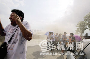 浑身湿透了也不影响观潮心情,趁着潮水还没走远,赶紧再看一眼。