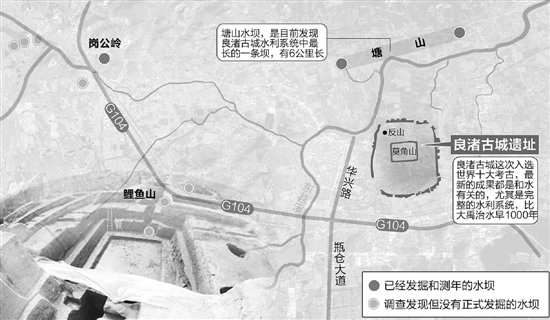 近几年,考古学家又在西北面的大遮山中发现了10个人工堆筑的水坝——彭公水坝系统。其中,如今被当地人称作岗公岭、秋坞、石坞、老虎岭的土坡,就是四五千年前古人堆筑的水坝遗址,长的300米,短的几十米,建于两山之间,而且部分可以和塘山的水坝相连,“这就构成了古城外完整的防洪水利系统,是良渚古城的有机组成部分。”刘斌说。