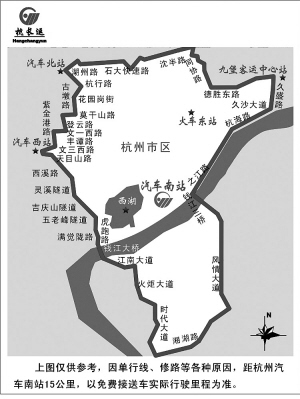 只要符合接送的标准,你就可以和杭州长运联系,由他们派车来接你去汽车站,或是从汽车站送到目的地,而且全部免费。