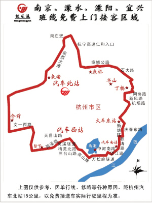 南京、溧水、溧阳、宜兴班线杭州免费上门接客区域。