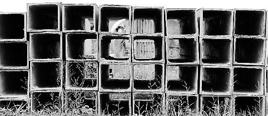 记者随机进入两家烟道厂,一条条长长的烟道,堆放在露天,不少烟道已经裸露出生锈的钢筋。