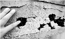 仔细看,有些烟道已经开裂出一个小洞。用小石块轻轻一砸,一些烟道就会破出一个大洞,内部生锈的钢筋摇摇欲坠。