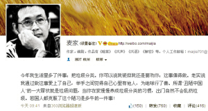麦家为什么发这条微博?昨天下午5点多,我电话采访了麦家。