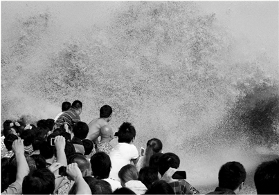 昨天,在钱塘江两岸,海宁、杭州两地有73万人同时观看大潮。