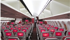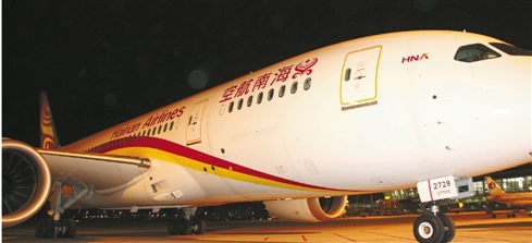 记者昨天看到,此次首航的海航787飞机客舱内饰以中国红为主基调,共设座位213个,其中头等舱36个,空间十分宽敞。全舱配备了个人娱乐电视、电源插座。特别是舷窗增大了一倍,所以无论乘客坐在飞机的什么位置,都能看到地平线,欣赏旅途的风景。