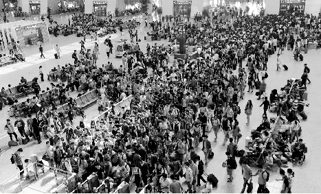 昨天,杭州火车东站候车大厅迎来国庆客流高峰。 记者 吴元峰 摄