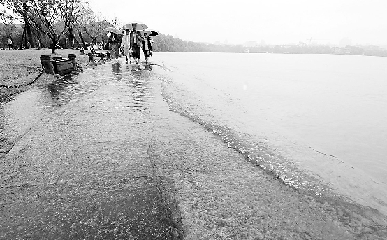 受湖州、嘉兴等地区暴雨影响,运河及其它河道水位被顶托,持续处于高水位,昨天19时,运河水位3.63米,超警戒水位0.93米;西湖水位7.61米,超警戒水位0.31米;城区其它河道水位也普遍超警戒水位,造成杭州市区部分道路、小区、居民家中的积水退却十分缓慢,抽排也十分困难。