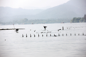 华东沿海是冬候鸟的迁徙路线,杭州正好在这条路线偏西一点,每年都会有许多冬候鸟路过杭州或在西湖越冬。冬候鸟对气候十分敏感,它们生活在中国东北、华北甚至更北面的西伯利亚地区,当北方的寒冬来临时,它们就会成群结队地飞向南方。