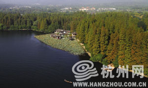 昨日8点45分,西湖杨公堤,秋色静美。 记者 韩丹 航拍