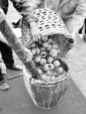 石灰水炝柿子 记者 周涛 摄