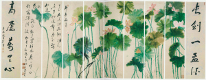饶宗颐还创作了书法作品“蹋天一石靡”,捐赠给西泠印社。“蹋天一石靡”取自李贺的诗句(端州石工巧如神, 蹋天磨刀割紫云),也是西泠印社首任社长吴昌硕经常创作的题材。