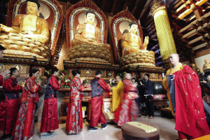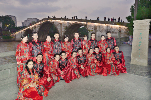 经过为期两个月的征集老杭州婚俗嫁娶习俗、寻找运河边的婚礼回忆,婚典在弘扬“勤业、向善”价值观的基础上,以“热心公益”为标准,遴选出10对新人,为他们举办了一场 “史无前例”的中式婚典。